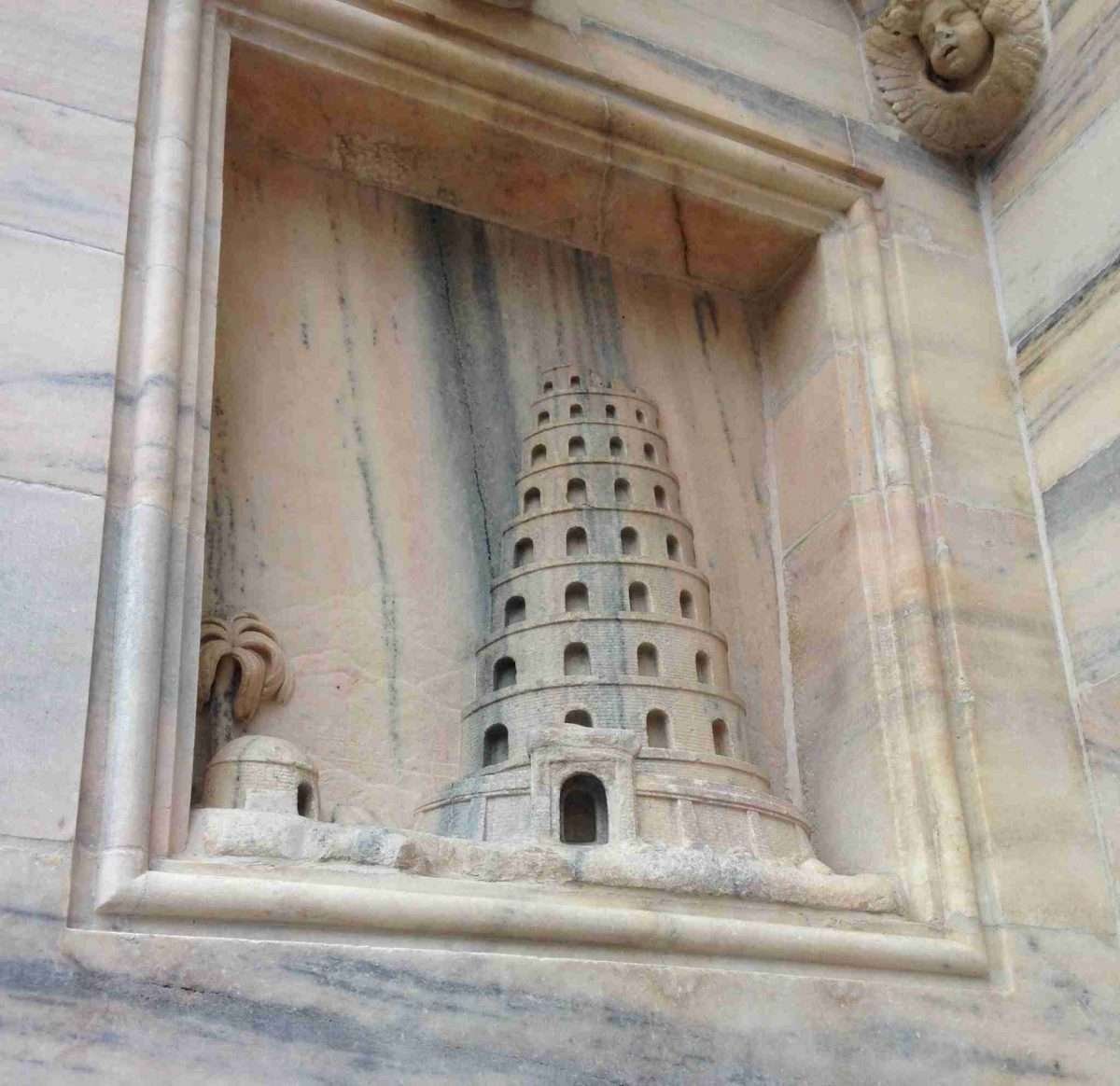 From the roof, but also from the street, you can observe loads of details on the exterior of Milan’s cathedral. There are relief sculptures, such as the one of the Tower of Babel (below), and decorative, allegorical bronze doors. The five doors depict the Edict of Constantine; the life of Saint Ambrose, Milan’s patron saint whose tomb is across town; the life of Mary (detail below); the Battle of Legnano; and the history of the cathedral.